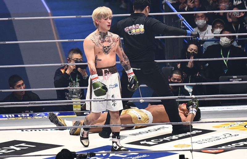 梅野を豪快にダウンさせた平本、梅野は大の字にダウン