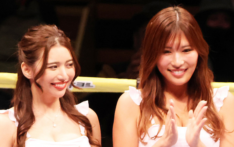 今回の井岡戦のラウンドガールは白ビキニ。前回よりも際どくない!?右は井岡戦初登場の、さゆり(左)RISABOOO