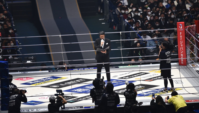 リングの中央に立ち、哀悼の言葉を述べた