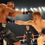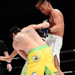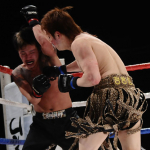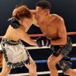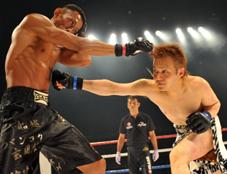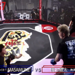 黒石高大(左)にパンチを放つMASAMUNE=12年