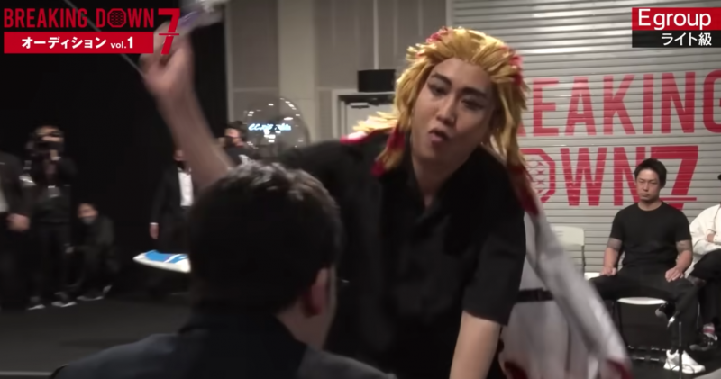 模型の刀で朝倉に斬りかかる!(朝倉未来YouTubeより)