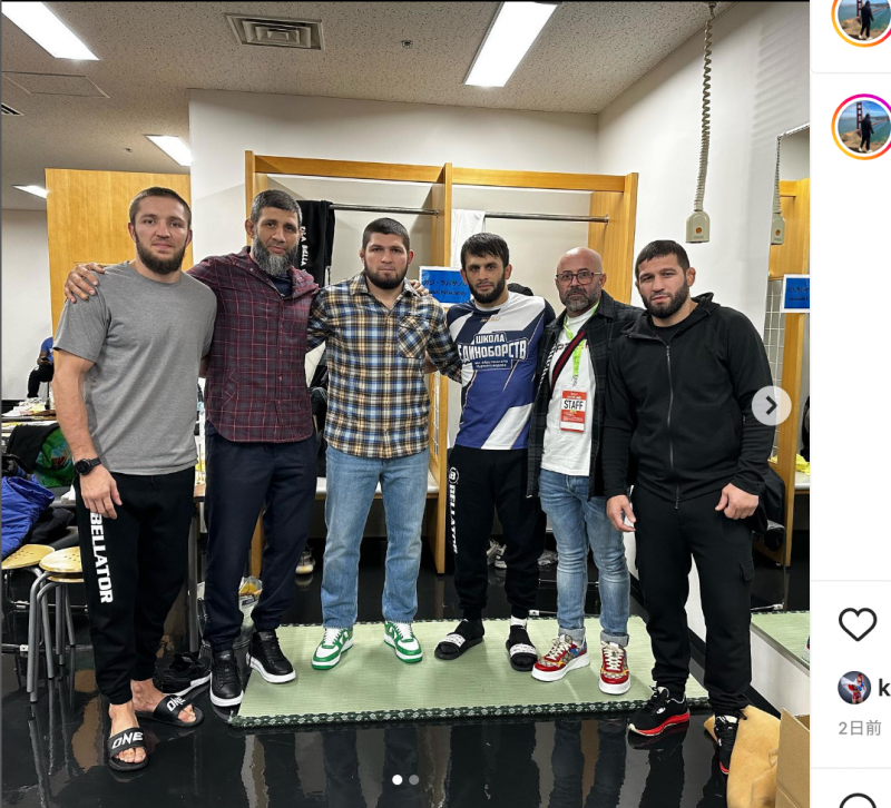 控室で勝利を喜ぶヌルマゴ@khabib_nurmagomedovより