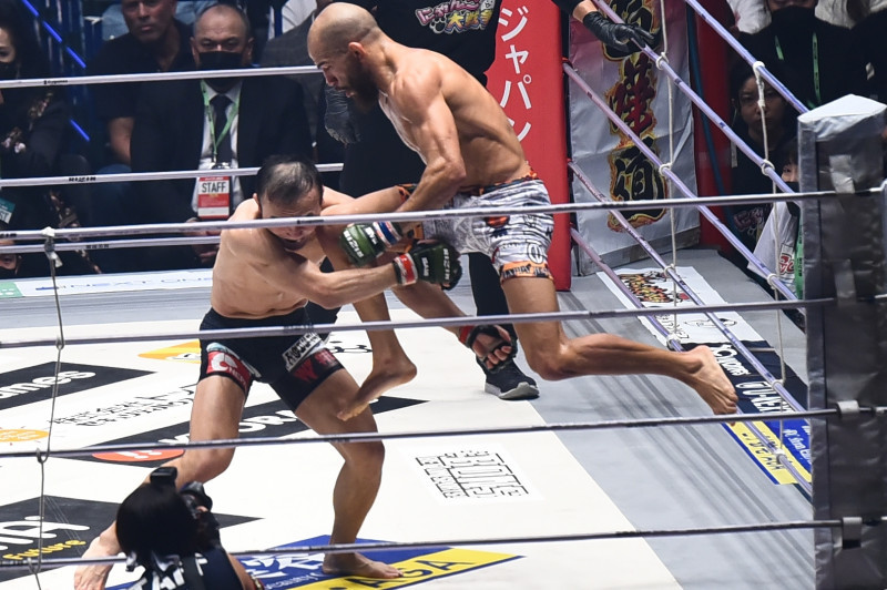 昨年大晦日、アーチュレッタが飛びヒザでスーチョルに襲い掛かる