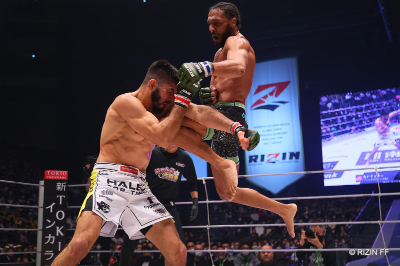 飛びヒザ蹴りを放つマッキー©️RIZIN