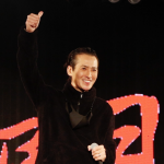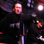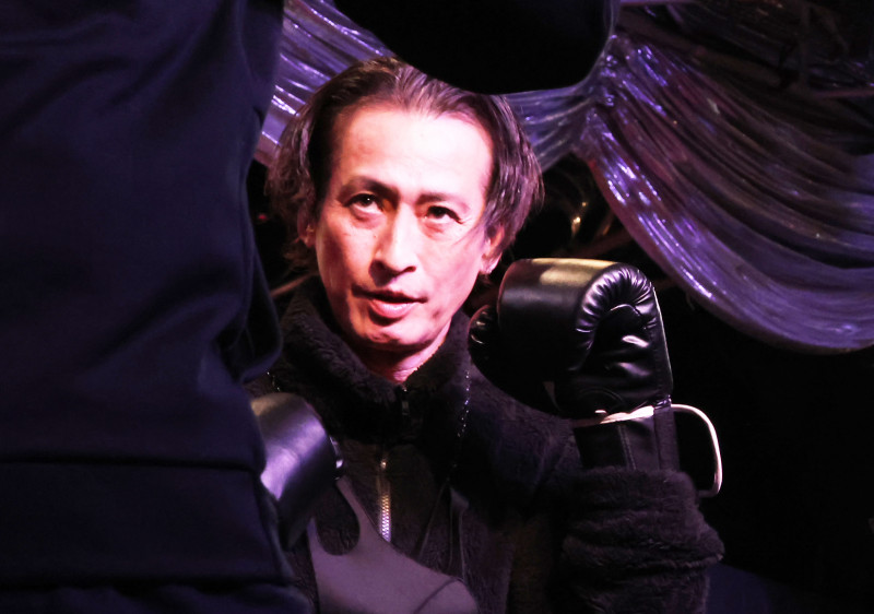 試写会でのミット打ちで快音を響かせた大沢樹生