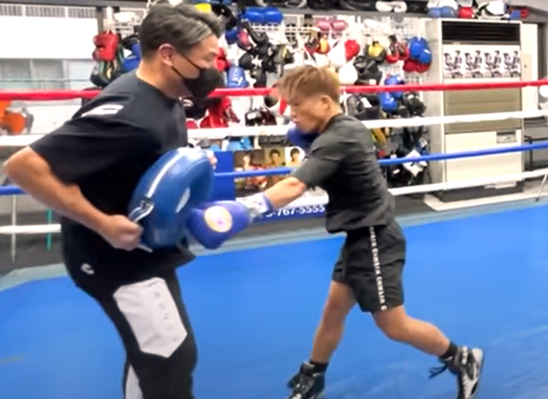 魔裟斗が重岡の左ボディを受けた(『魔裟斗チャンネル』より)