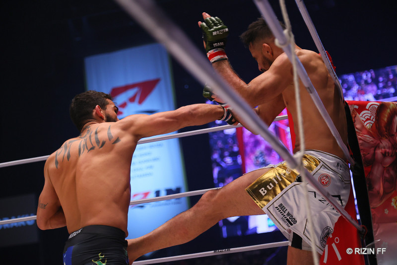 パンチでコーナーに追い詰めるパトリシオ©️RIZIN