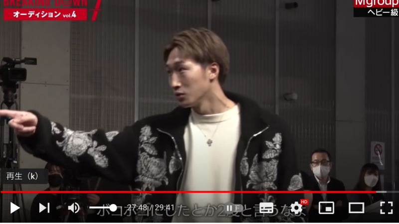 ノッコンを指座しながら「2度とボコボコにしたと言うな」と睨みつける安保(朝倉未来YouTubeチャンネル)