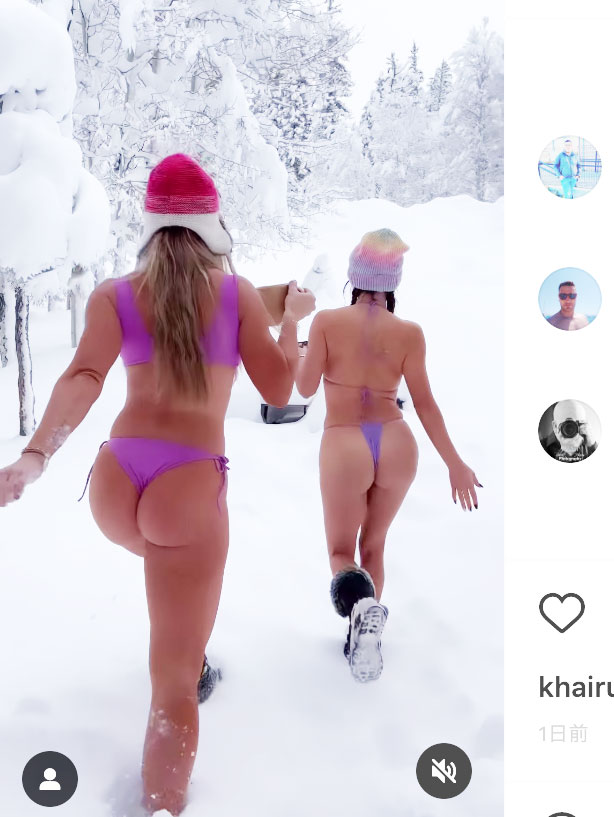 【写真9枚】▶︎次はビキニで乾杯=雪の中を歩いていく@ariannycelesteより