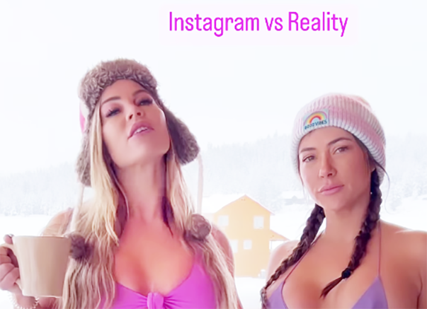 UFC人気ラウンドガールアリアニー(右)とトレーナードレイン(左)が雪に中でビキニ姿@ariannycelesteより
