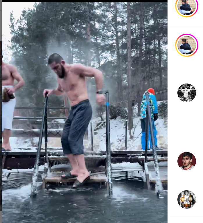 身体から湯気を立たせながら池に入るマカチェフ R@islam_makhachevより