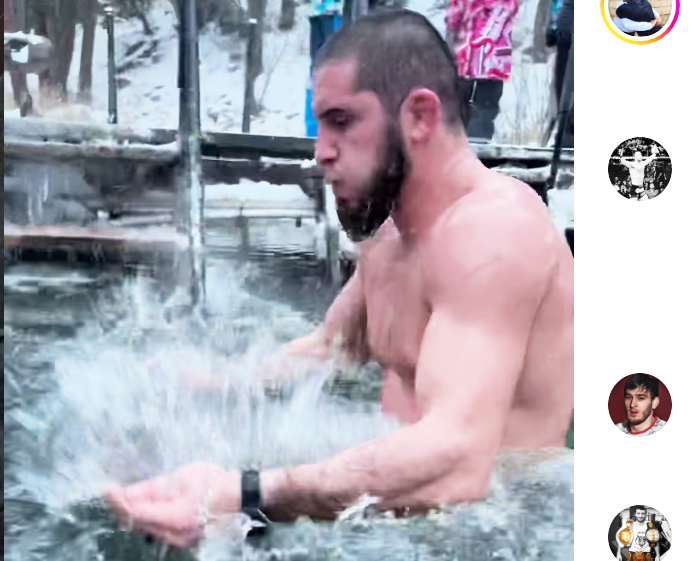 氷点下の池に飛び込んだUFC世界王者マカチェフ @islam_makhachevより