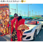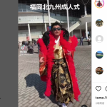 バン仲村がフェラーリーの前でかぶき者衣装(@nakamura_tvtvより)