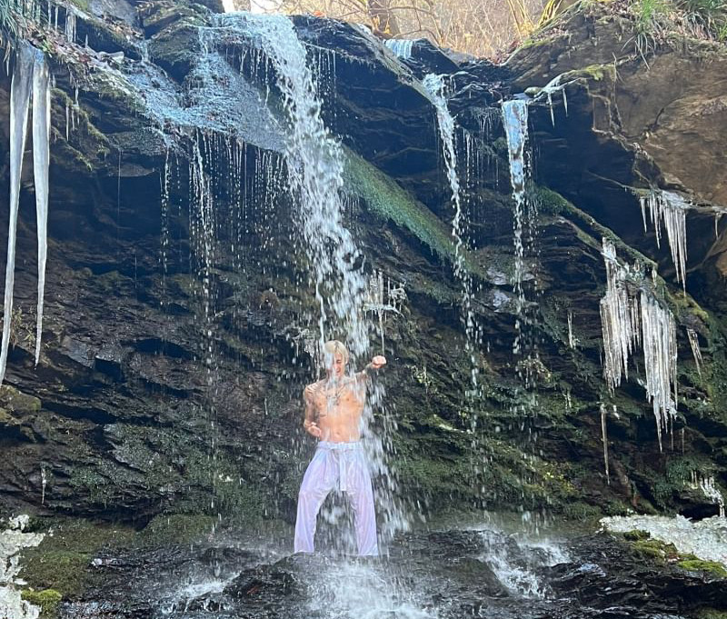 滝に打たれる平本蓮、大きなつららも見える