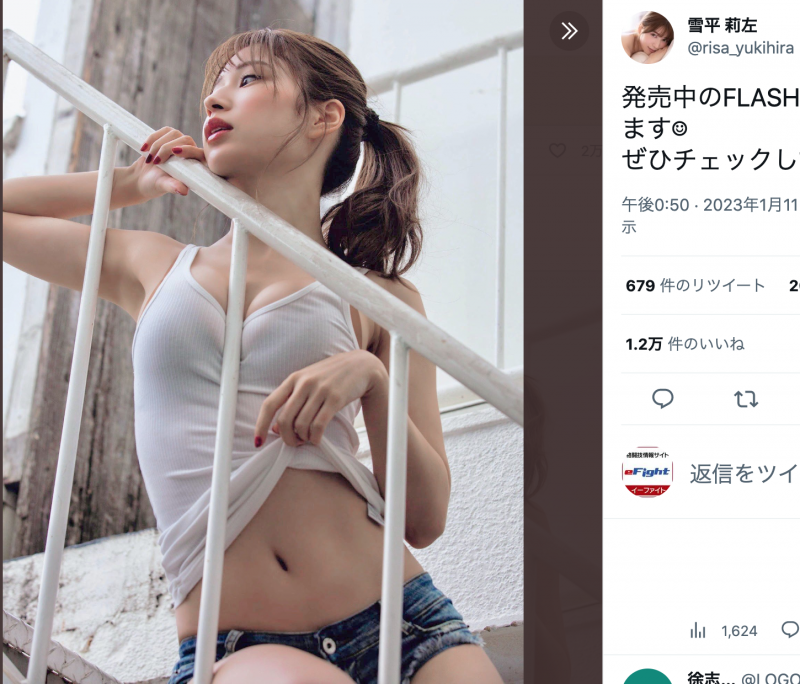 雪平が美腹筋グラビア!Twitterで10日発売のFLASHを告知