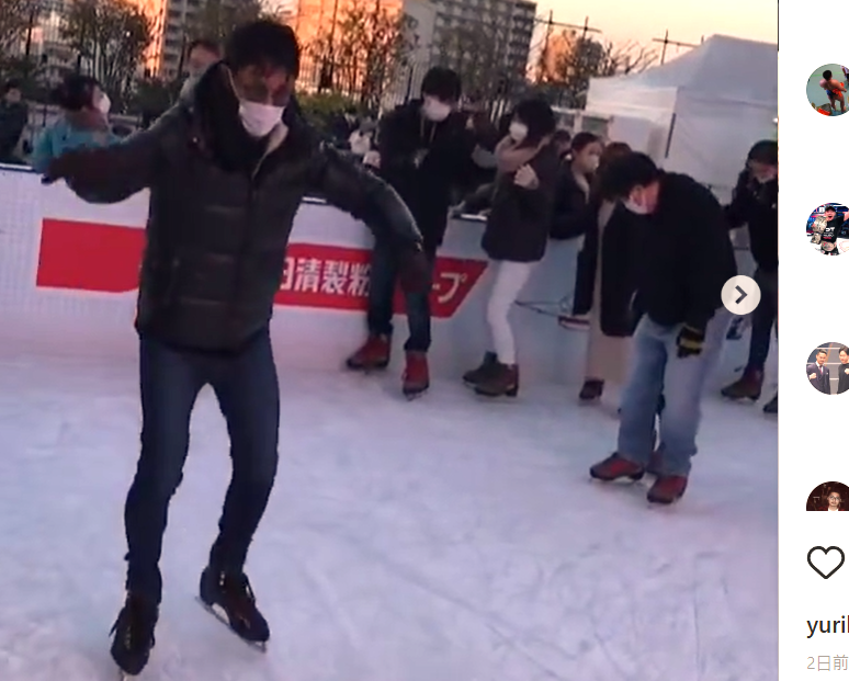 梅野源治がスケートのリンクでタコ踊り(梅野源治インスタグラム)