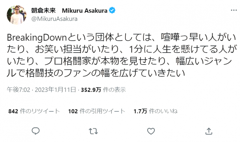 朝倉未来がTwitterで、ブレイキングダウンの存在意義を返答