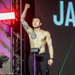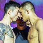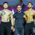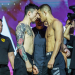 額をぶつけ合う佐藤(右)とジェウォン(左)©️ONE