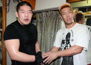 2014年にボクシングスパーをしていた石井慧(左)と京太郎(右)