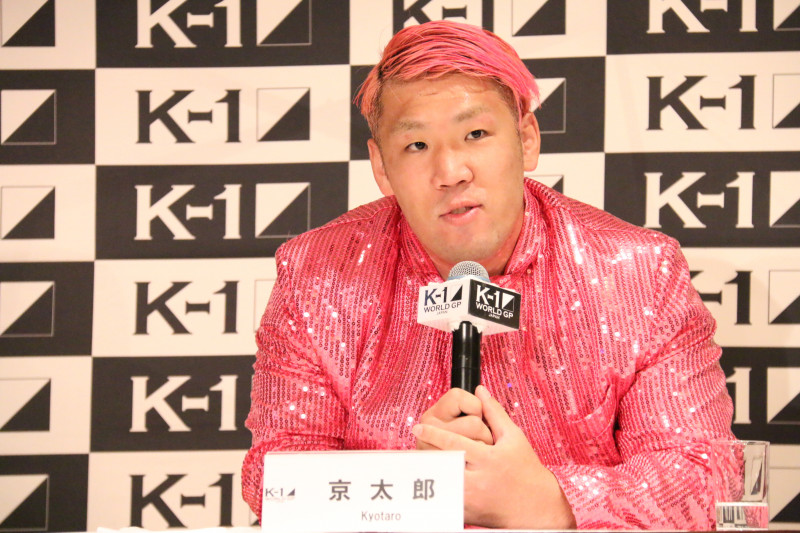 京太郎はピンクのジャケットを着ていたが、脱いで空手着を見せた