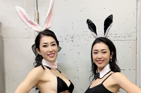 プロレス会場でバニー姿で美ボディコンテストが行われた。左が前田瑠美さん、右が内山智美さん