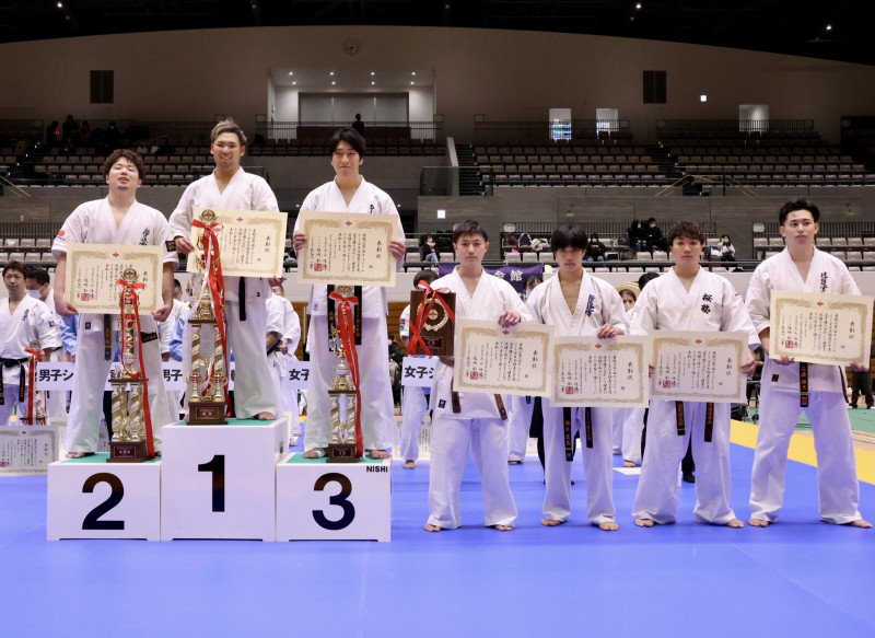 男子入賞者 左から重松、芦高、武藤、呉屋、福永、石野、石嶺