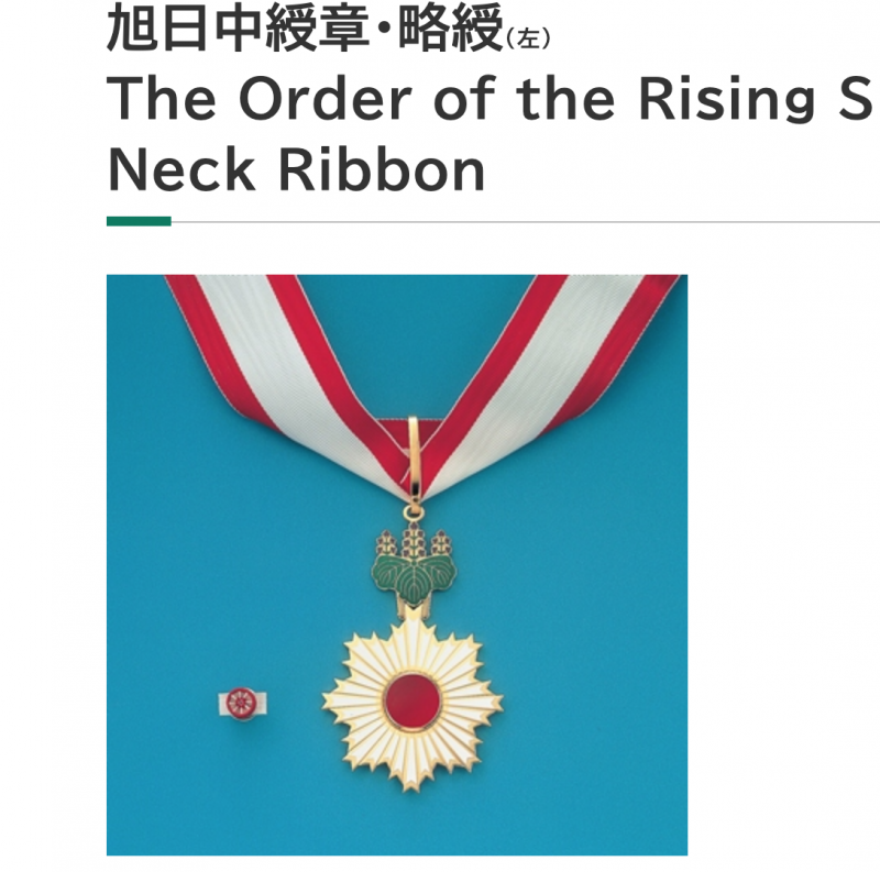 猪木さんに授与される勲章「旭日中綬章」