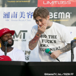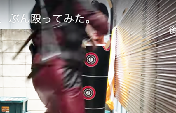 最初の挑発!平本がサンドバッグに貼り付けた朝倉未来をなぐりかかる(=20年4月)