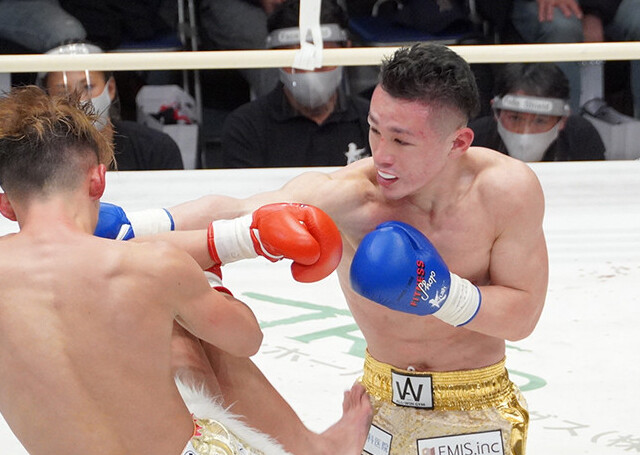 強烈なパンチを打ち込む吉岡