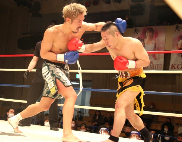 東本(左)は前戦で大月(右)との打ち合いを制した
