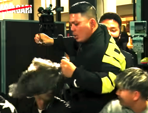 揉み合いからカツラが取れる場面(皇治YouTubeチャンネルより)