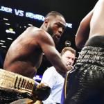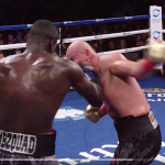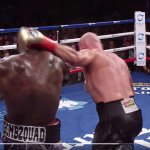 1、相手のフックにワイルダーのショートがヒット!(PBC Twitter)