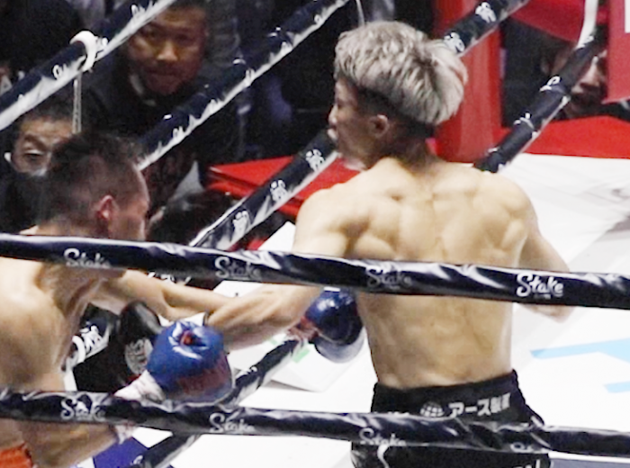 井上がドネアをKOする瞬間、鬼の背筋が浮き出る