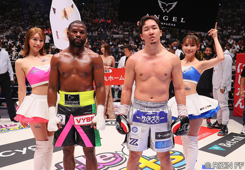 朝倉vsメイウェザー戦でもラウンドガールを務めたHinano(左)