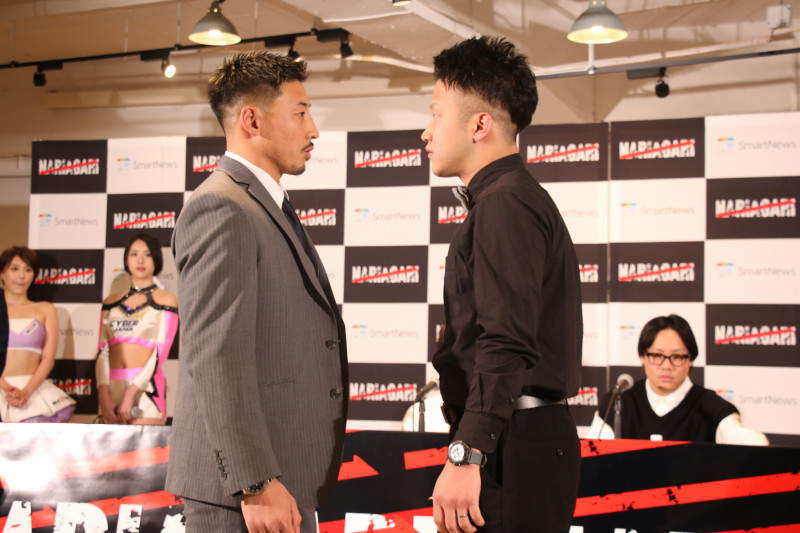 平山(左)が晴也(右)とバチバチフェイスオフ