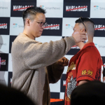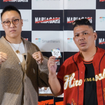 “ジャイアン”キャラの朝太(右)がSANTEと対戦