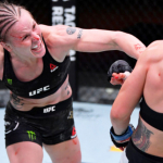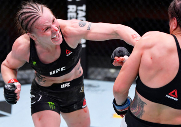 鬼の形相でマイアをパンチを振るう“絶対王者”シェフチェンコ(左)(getty/Zuffa LLC/UFC)