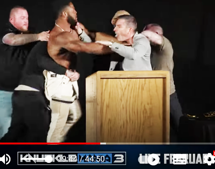 ハントの喉元を抑えるフェリドマン社長(BKFC公式YouTubeより)