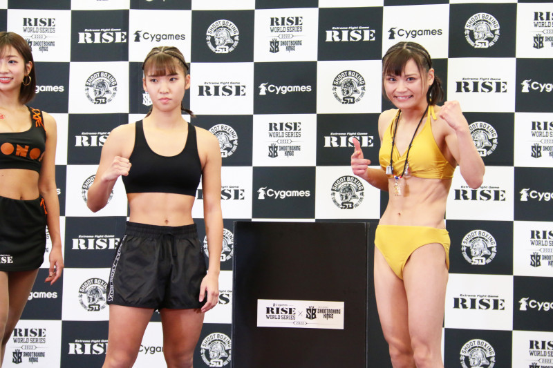 RISEアトム級王者・宮﨑(左)と並ぶMISAKI