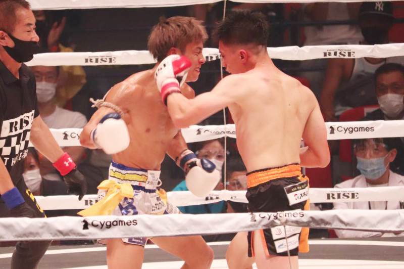 大﨑がK-1でも活躍する石井一成に、左フックでダウンを奪う=21年