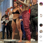 仕上がった腹筋とふくらはぎをアピール@steficohenより