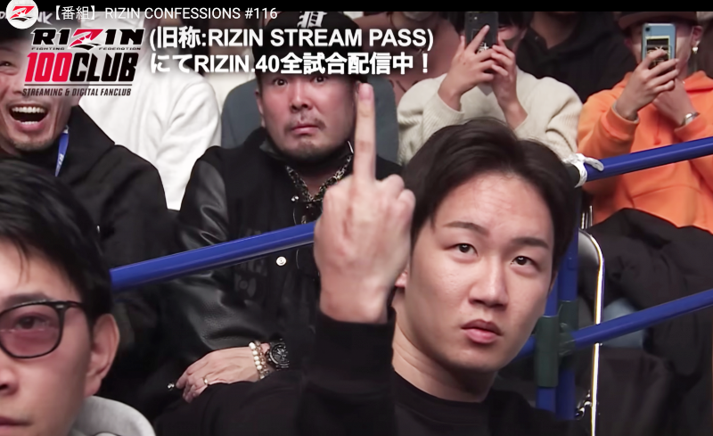 平本の挑発に会場で中指を立てる朝倉未来RIZIN公式YouTube