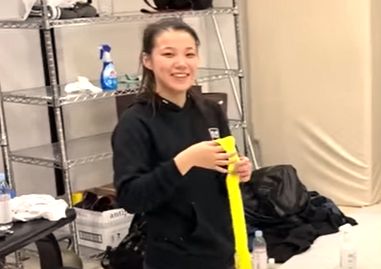 海の指摘を受けて苦笑するせりな(『格闘家せりなちチャンネル』)