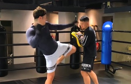 元ボクサーの飯田将成(左)がHIROYA(右)に技術を教わった(『飯田将成チャンネル』サムネイルより)