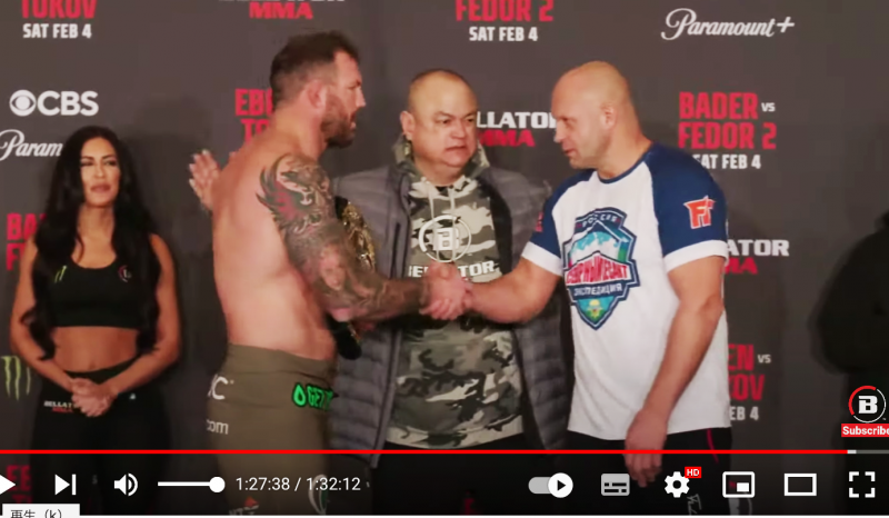 握手する両者(BellatorMMA公式YouTubeより)