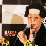 発表会見で”中堅ヤクザ”の扮装をする城戸