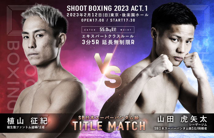 王者・植山が勢いに乗る山田虎矢太を迎える(C)SHOOT BOXING