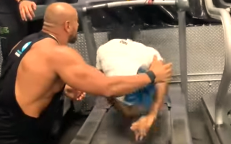 クラークはランニングマシンを腕だけで走行@ZionClark1