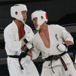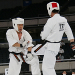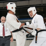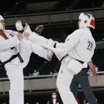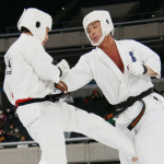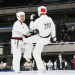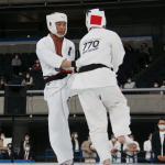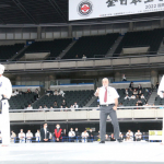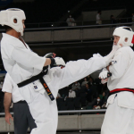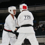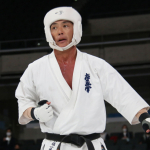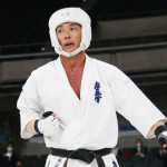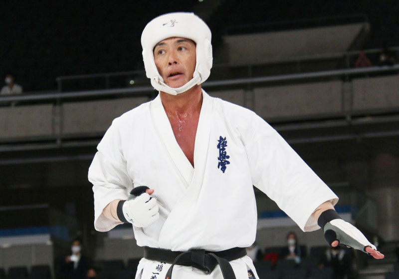 前蹴りで技有りとなり、残心ポーズを決める長嶋
