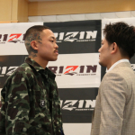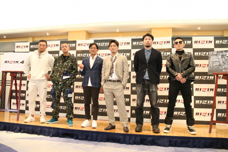 会見に出席した選手たちと、RIZIN榊原信行代表(左から3番目)